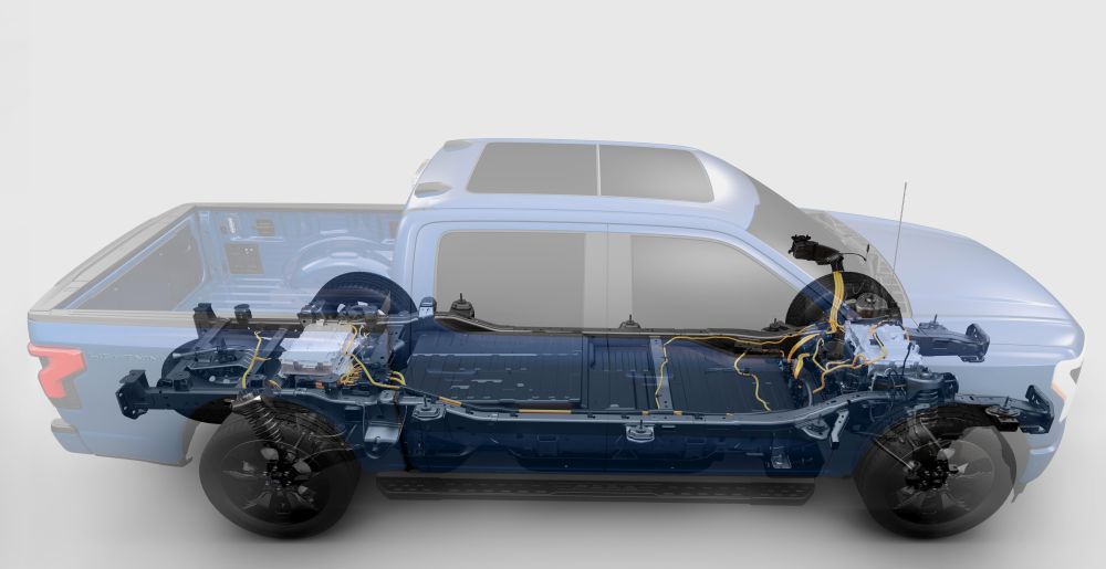 But the big draw here is its electrified powertrain. While all of the trucks have a dual-motor setup, buyers can choose between two versions of the battery pack, and while it didn't specify the capacity onboard, it said the standard version includes an onboard charger that can input 11.3kW, while the extended range model inputs 19.2kW. Ford is targeting an EPA estimated 230 miles of range for the standard version, and 300 miles on the extended. The battery is liquid cooled, sealed inside a waterproof casing with metal skid plates and a ruggedized under body to protect the cells and the motors. It's undergone offroad testing as well as weather testing at 40 degrees below Fahrenheit.